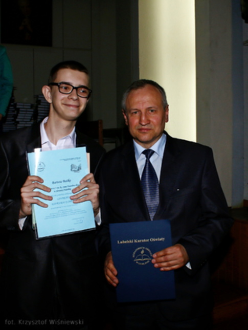 W dniu 14. maja 2015 r. w auli im. Kardynała Stefana Wyszyńskiego na Katolickim Uniwersytecie Lubelskim odbyła się uroczystość wręczenia nagród laureatom konkursów przedmiotowych. Bartosz Bańka, który w tym roku jest jedynym laureatem z naszej szkoły wraz z nauczycielem chemii Zbigniewem Rzemieniukiem i dyrektor szkoły Małgorzatą Polichą odebrał nagrodę za tytuł laureata z chemii, nauczyciel i dyrektor otrzymali podziękowanie.