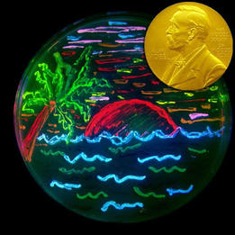Tegoroczną Nagrodę Nobla w dziedzinie chemii przyznano za odkrycie nietypowego, świecącego białka GFP, wytwarzanego przez żyjącą u zachodnich wybrzeży Ameryki Północnej meduzę Aequorea victoria, czego dokonał w roku 1962 Osamu Shimomura oraz dalsze prace nad tym białkiem Martina Chalfie oraz Rogera Y.Tsiena.